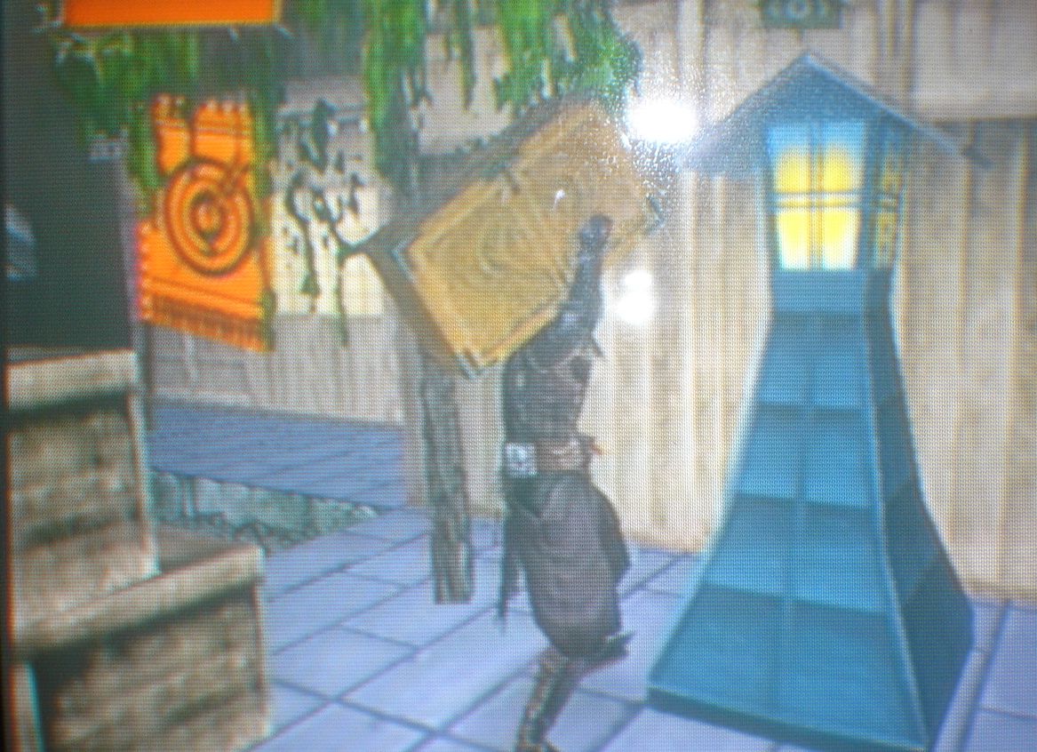 スタート地点右前方の塀を昇り、足場としてジャンプし旅館の屋上に昇ろう。
