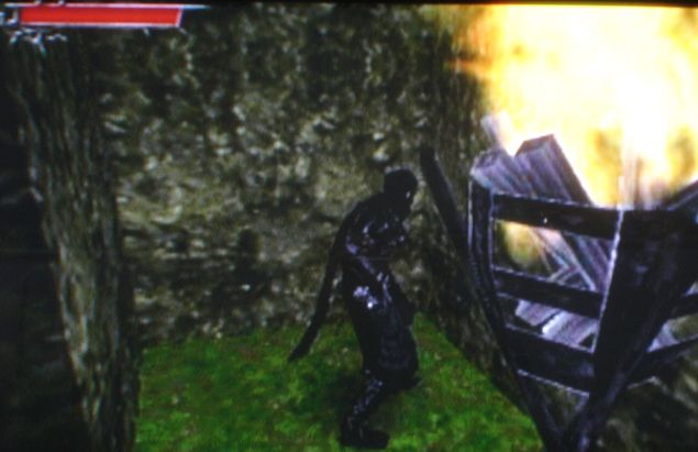 僕の攻略パターンは安全第一ということで、かがり火の上記写真の箇所で壁接地ジャンプを利用して崖上に登ります。