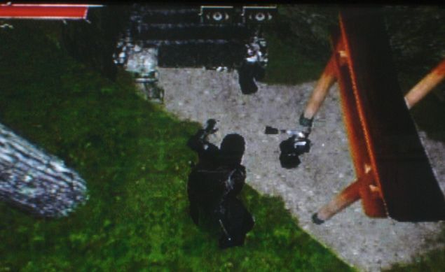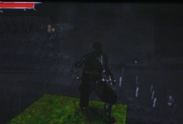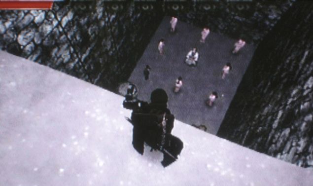 拙者の場合ここの遠い位置から、なだれを誘発させるため左端の火薬桶をめがけてお金を射的し"仕掛け"を作動させます。残った敵はここから、スナイパー(狙撃手)のごとく狙います。うす闇の中動く敵を悟られることなく確実に・・・。