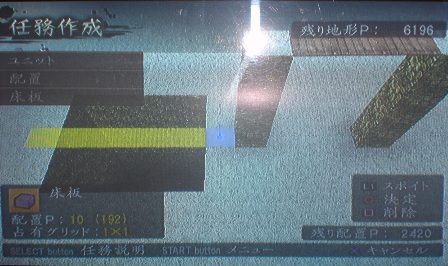 ユニット編集→配置→床板で奈落の両岸に橋を架けるように配置すると床板が配置できます。(黄色になってる部分です)