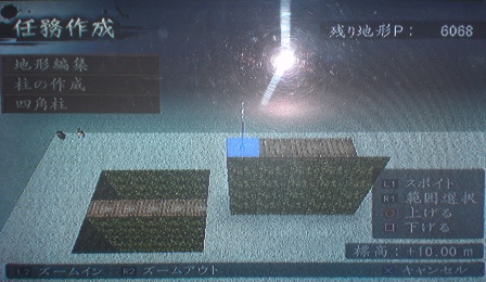 まず、地形編集→柱の作成→四角柱で同じ高さの柱を作成します。この時、柱と柱の間には空間1マス以上設けて下さい。